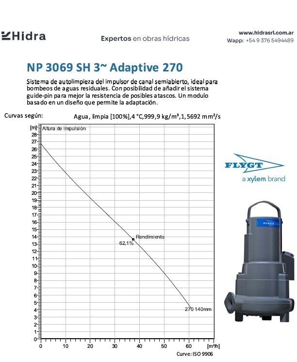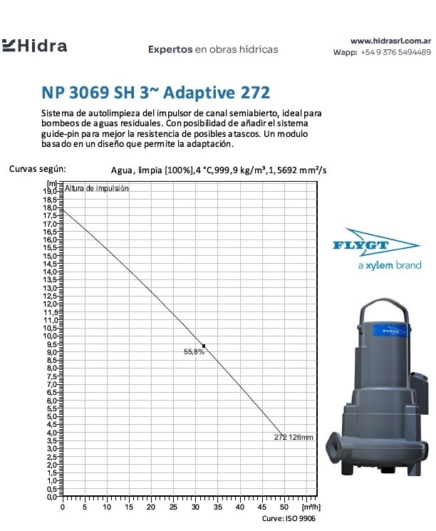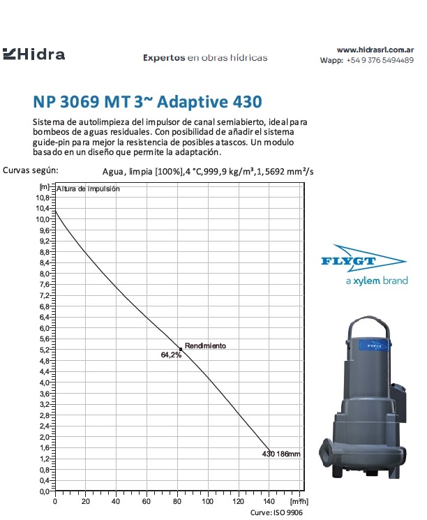 | NX | 3069.160 | MT | Impulsor: Adaptive-N, Grey cast iron; Instalación: X | DN 80 (3") | 2kW | 4-polos | 380V | Y | 3-ph | Térmica en bobinado | NO | 140 | 124 | 85 | 40 | 3,3 | Caudal (m3/H) | ||||