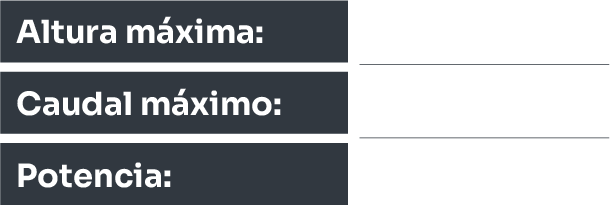 | Bomba | Curva | Descripción | Salida | Motor | Protección | Admite válvula de limpieza | Altura Metros | ||||||||||||||