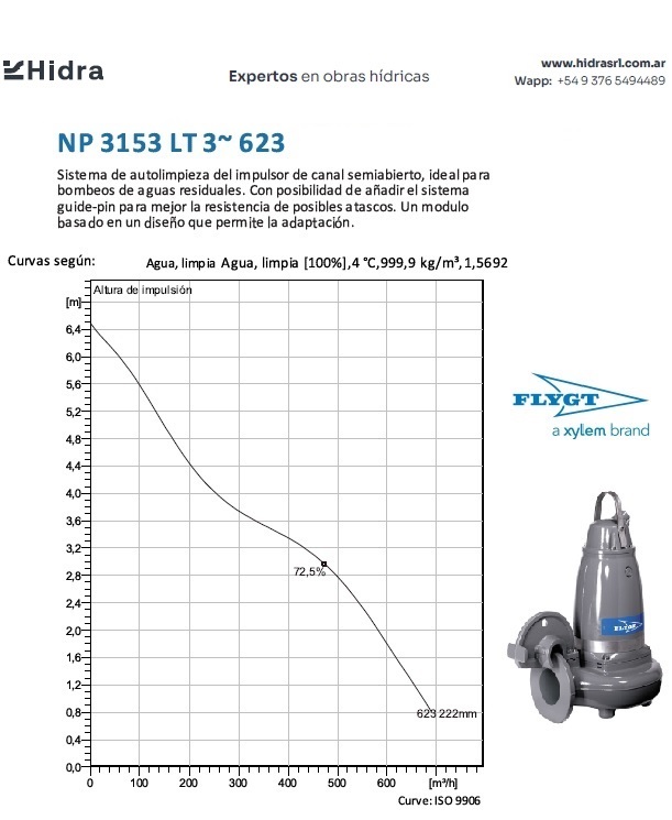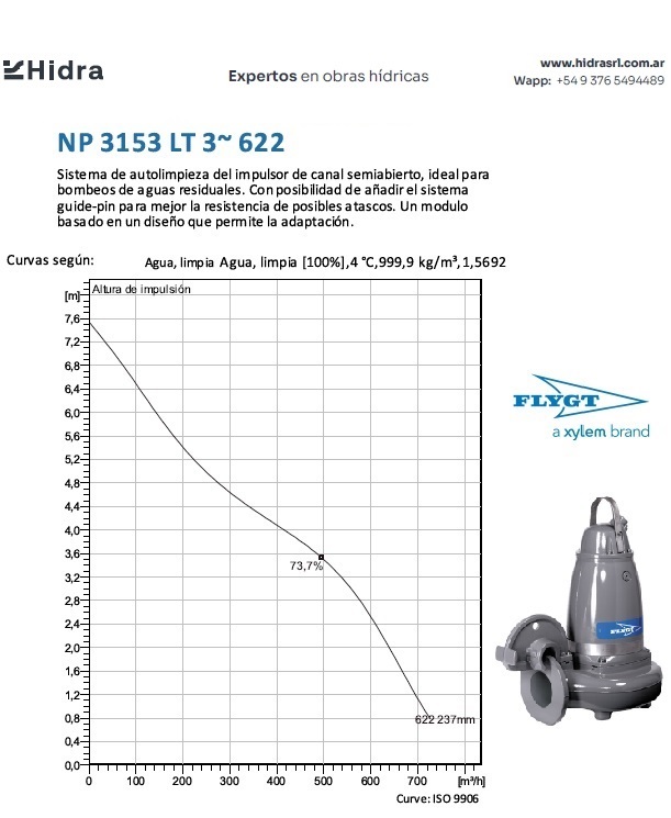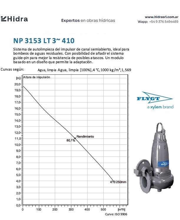 | NP/NS | 3153.182 | LT | Impulsor: N, Grey cast iron; Instalación: P/S | DN 200 (8") | 13,5 kW | 4-polos | 400V | D | 3-ph | Térmica en bobinado/FLS | SI | Caudal (m3/H) | 536 | 506 | 413 | 322 | 117 | |||