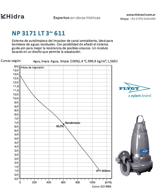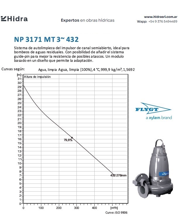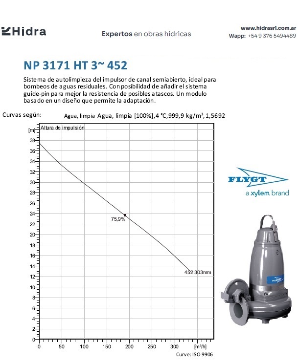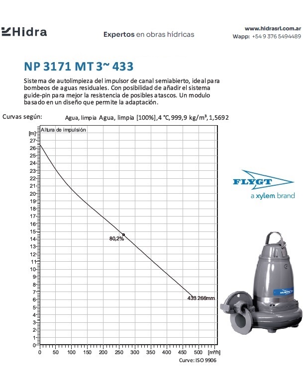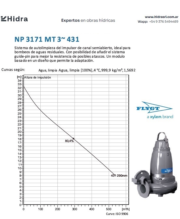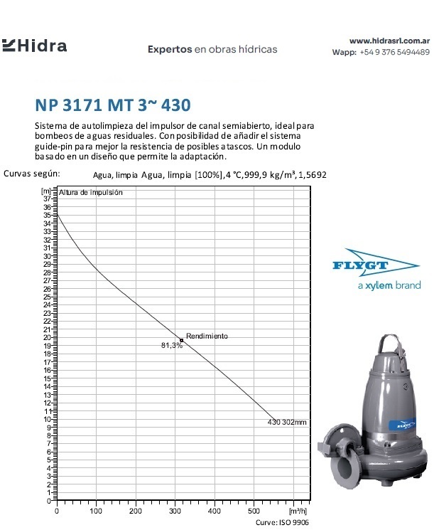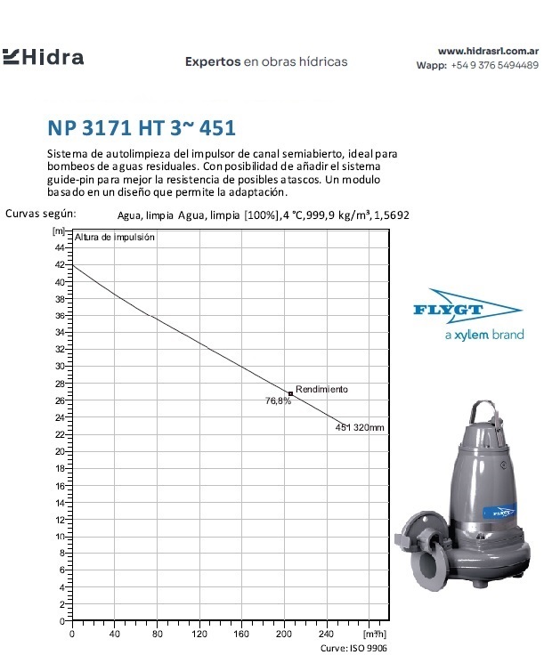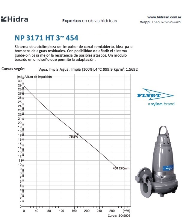 | NP/NS | 3171.181 | HT | Impulsor: N, Grey cast iron; Instalación: P/S. | DN 100 (4") | 15kW | 4-polos | 400V | D | 3-ph | Térmica en bobinado/FLS | SI | 280 | 204 | 123 | 45 | ||||||