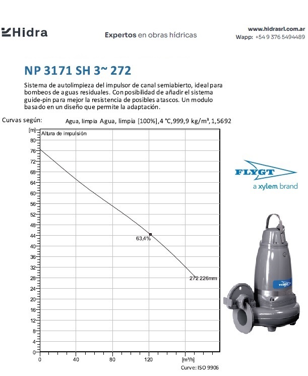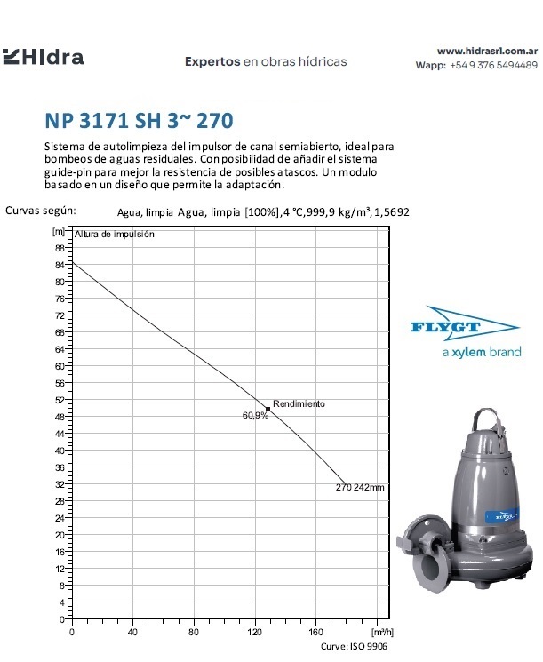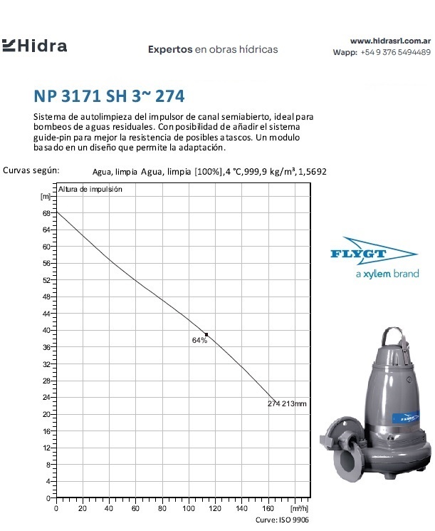 | NP/NS | 3171.181 | SH | Impulsor: N, Grey cast iron; Instalación: P/S. | DN 100 (4") | 22 kW | 2-polos | 400V | D | 3-ph | Térmica en bobinado/FLS | SI | 166 | 153 | 138 | 60 | ||||||