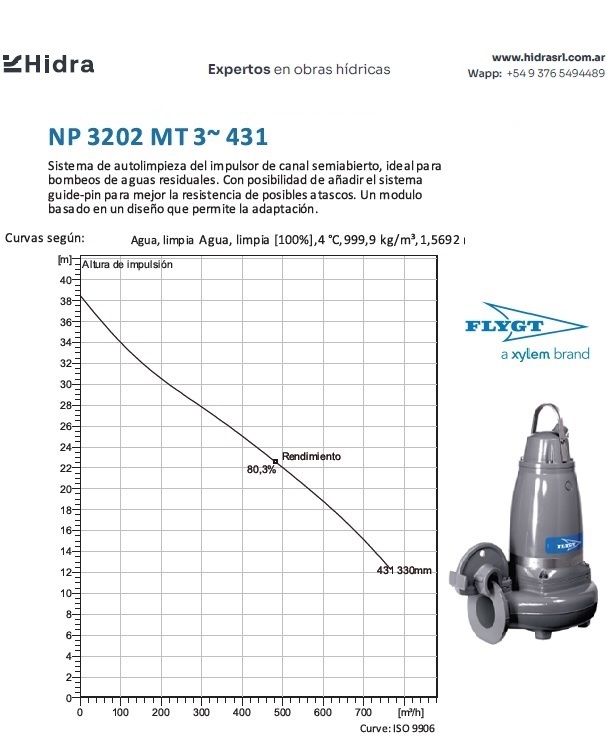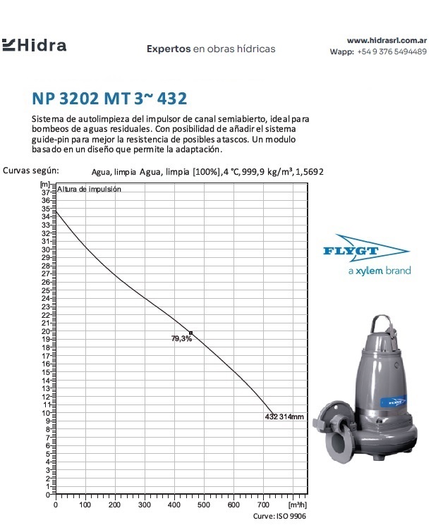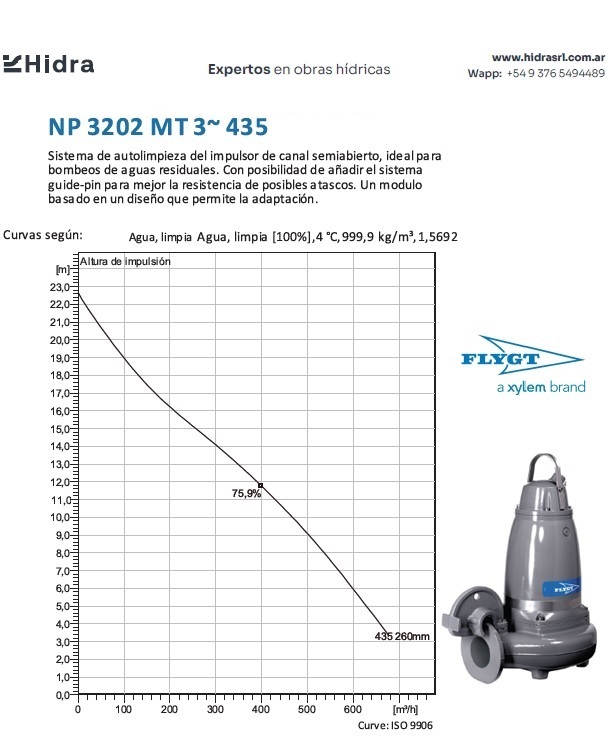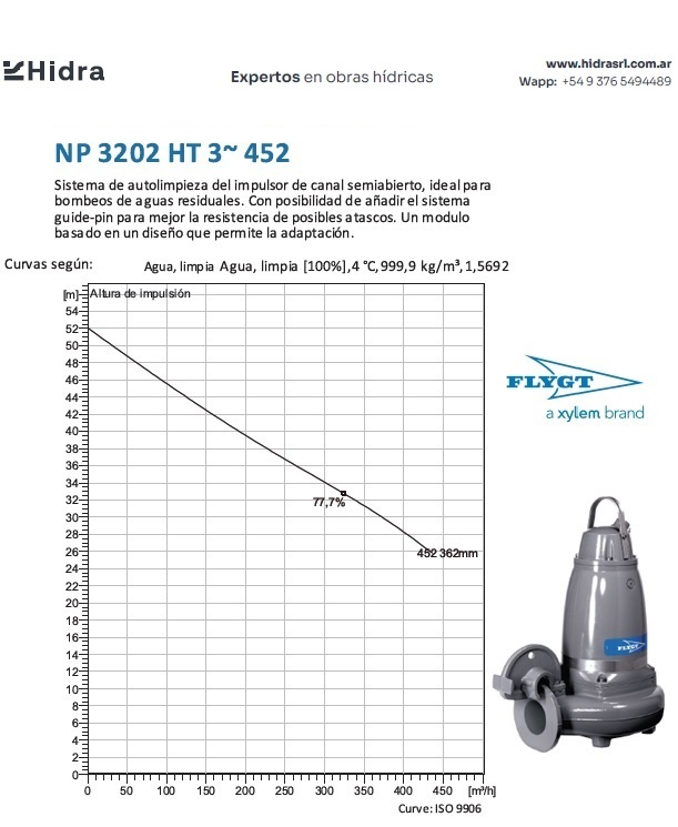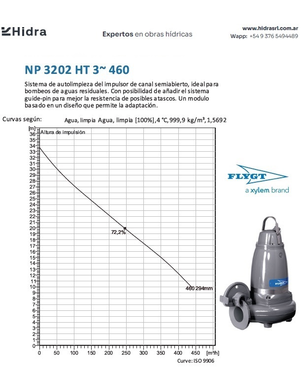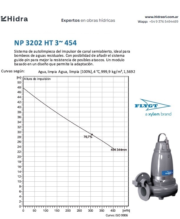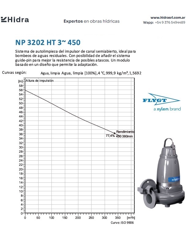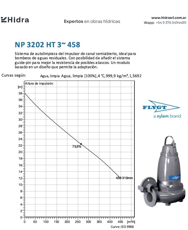 | NP/NS | 3202.180 | HT | Bomba N 3202; Impulsor: N, Cast iron; Instalación: P. | DN 150 (6") | 45 kW | 4-polos | 400V | D | 3-ph | 4G16+S(2x0.5) | Térmica en bobinado/FLS | SI | 449 | 387 | 301 | 200 | 119 | 47 | ||||