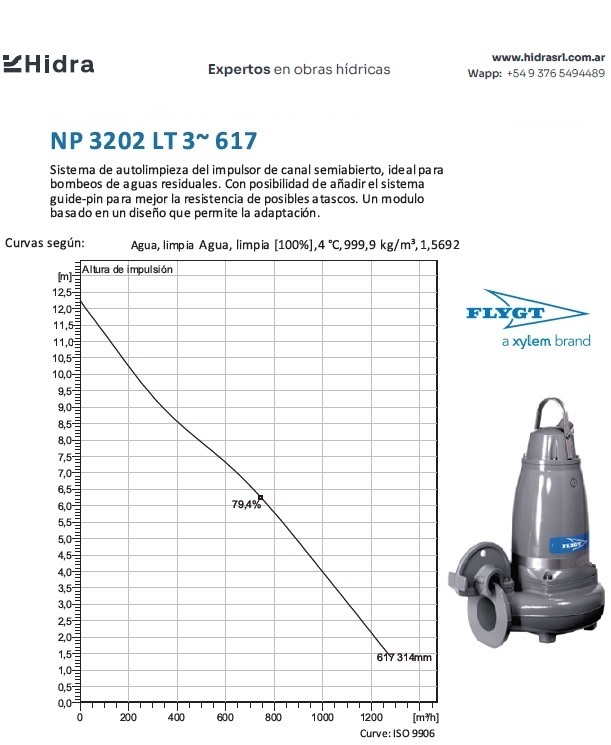 | NP/NS | 3202.180 | LT | Bomba N 3202; Impulsor: N, Cast iron; Instalación: P. | DN 300 (12") | 37 kW | 6-polos | 400V | D | 3-ph | 4G16+S(2x0.5) | Térmica en bobinado/FLS | SI | 1715 | 1485 | 1290 | 1088 | 606 | 133 | |