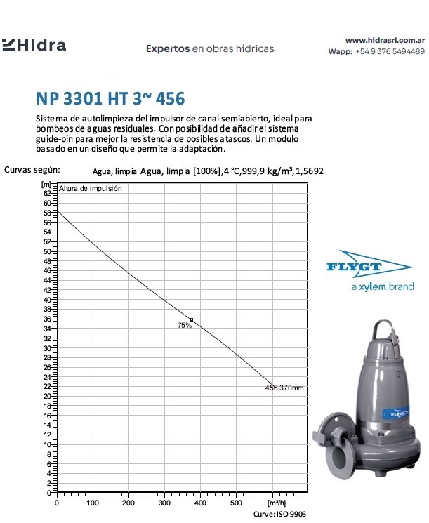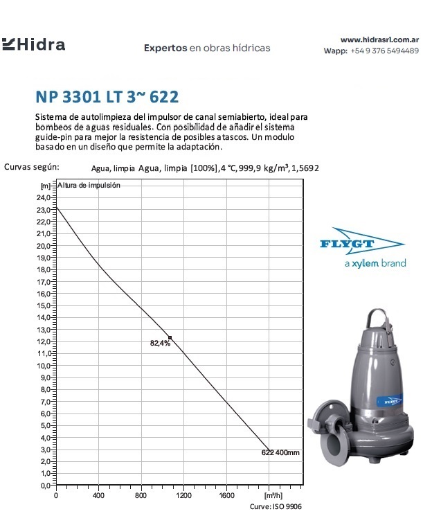 | NP/NS | 3301.180 | LT | Impulsor: N, Cast iron; Instalación: P/S | DN 300 (12") | 55 kW | 6-polos | 400V | D | 3-ph | 4G35+S(2x0.5) | Térmica en bobinado/FLS | SI | 2164 | 1941 | 1720 | 1584 | 1501 | 1325 | 1048 | 481 | |