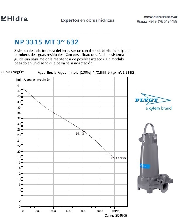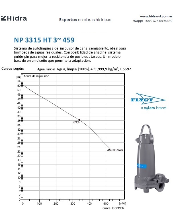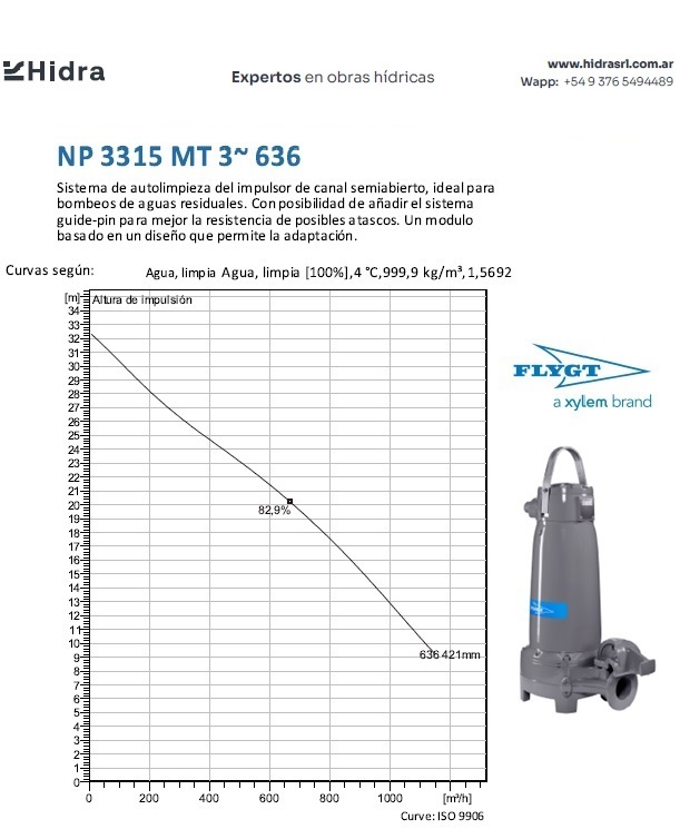 | NP/NS | 3315.180 | HT | Bomba N 3315; Impulsor: N, Cast iron; Instalación: P/S | DN 150(6") | 105 kW | 4-polos | 400V | D | 3-ph | (2x) 4G35+S(2x0.5) | Térmica en bobinado/FLS | No | 572 | 503 | 356 | 157 | 59 | ||||||||