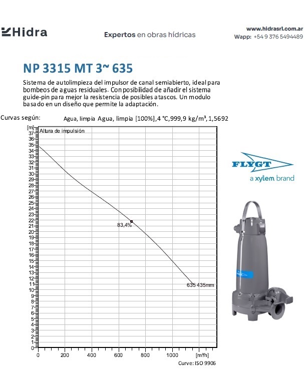 | NP/NS | 3315.180 | HT | Bomba N 3315; Impulsor: N, Cast iron; Instalación: P/S | DN 150(6") | 85 kW | 4-polos | 400V | D | 3-ph | (2x) 4G25+S(2x0.5) | Térmica en bobinado/FLS | SI | 506 | 440 | 358 | 268 | 166 | ||||||||