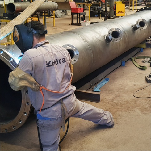 Cañerías en acero al carbono y acero inoxidable, estructuras metálicas para captación de agua, múltiples de impulsión y admisión, piezas especiales para acueductos, equipamiento para plantas de tratamiento civiles, plantas compactas para potabilización de agua y tratamiento de líquidos cloacales. Tableros eléctricos de potencia y protección de bombas.